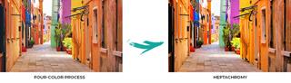 The use of the heptachromy process, other than the undoubted advantage of obtaining spot colors without long mixing times of the inks, allows to improve the color rendering within the images.